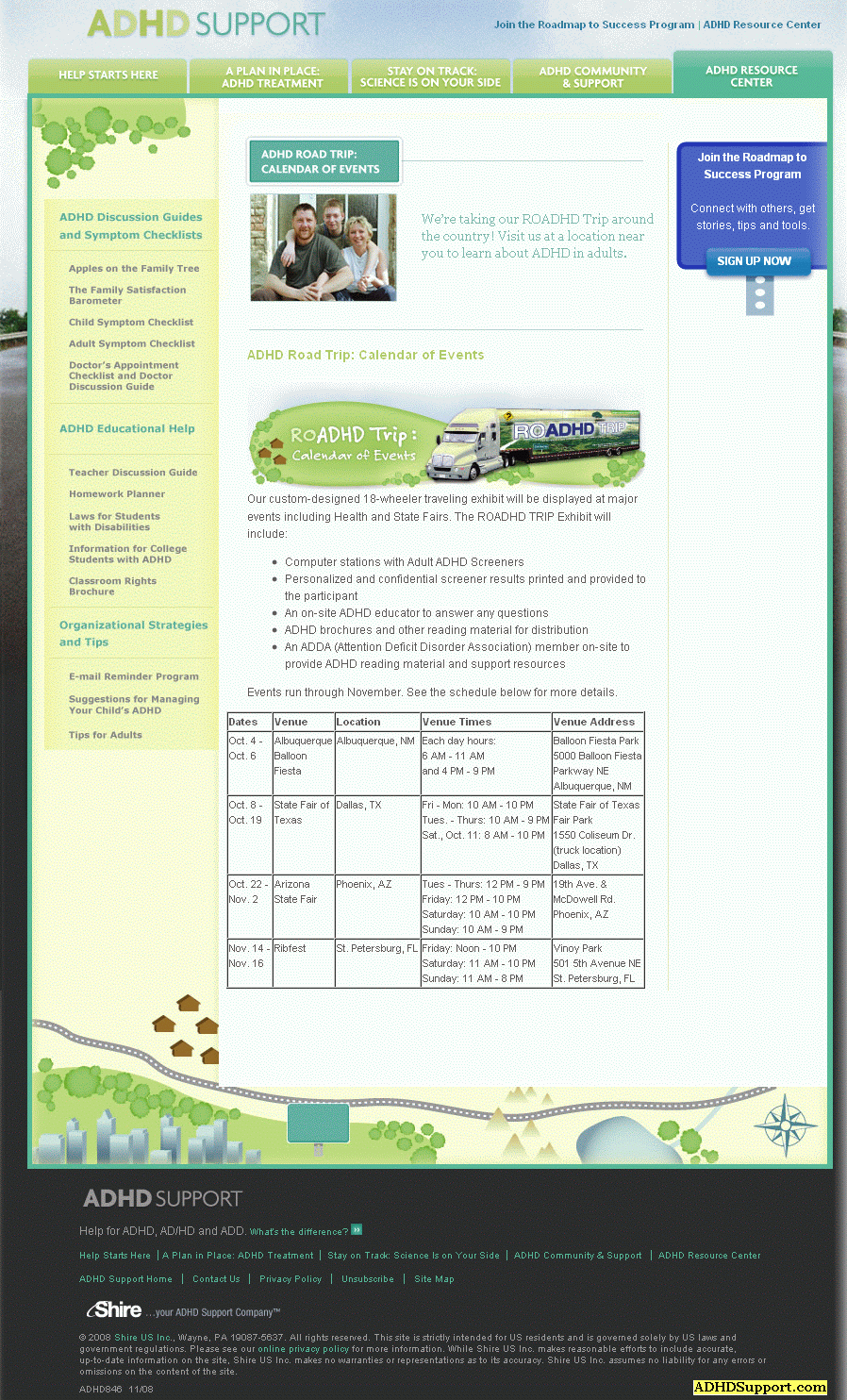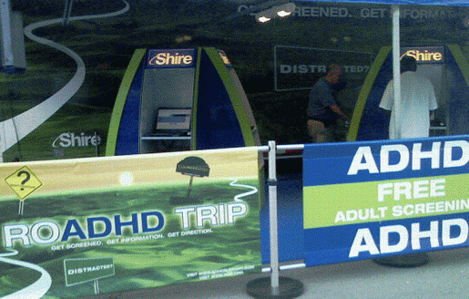 Shire ROADHD TRIP, 2008 Shire U.S. Inc. and Integrated Communications Corp. (ICC) Shire manufactures Adderall, Daytrana and Vyvanse. ICC is a medical communications company or, better put, a pharma ad agency. ON THE ROADHD AGAIN Trucking across the United States to provide adults with free ADHD screening, information, and direction. According to estimates, nearly 10 million adults in the United States have Attention Deficit Hyperactivity Disorder (ADHD), 2.4 million of them are being treated for this disorder.   However, approximately 7.5 million adults with ADHD remain untreated.   Studies show that adults with ADHD have a lot to lose.   They are more likely to be unemployed, divorced, and involved in multiple car crashes compared with adults without ADHD. The challenge was to expand the market for ADHD.   To achieve this goal, a mobile consumer outreach program, was developed that would screen for adults with undiagnosed ADHD and provide them with information about this disorder and how to get help for it. The program features a customized big rig truck completely wrapped in the campaign's enormous and engaging graphic message, ROADHD Trip, Free Adult Screening.   Trucking around the United States and making scheduled and advertised stops at health fairs and other public venues, the ROADHD Trip mobile screener will undoubtedly draw crowds.   Adults who think they may have ADHD are invited to participate in a free self-screening when Shire's "ROADHD Trip" arrives in their area.   Giveaways include ADHD information brochures and ROADHD Trip water bottles. Our custom-designed 18-wheeler traveling exhibit will be displayed at major events including Health and State Fairs.   The ROADHD TRIP Exhibit will include: * Computer stations with Adult ADHD Screeners * Personalized and confidential screener results printed and provided to the participant * An on-site ADHD educator to answer any questions * ADHD brochures and other reading material for distribution * An ADDA (Attention Deficit Disorder Association) member on-site to provide ADHD reading material and support resources An outdoor patio was created to invite interested parties to break from the heat of a summer day, have a cool drink and explore solutions for this condition in a relaxed setting. |